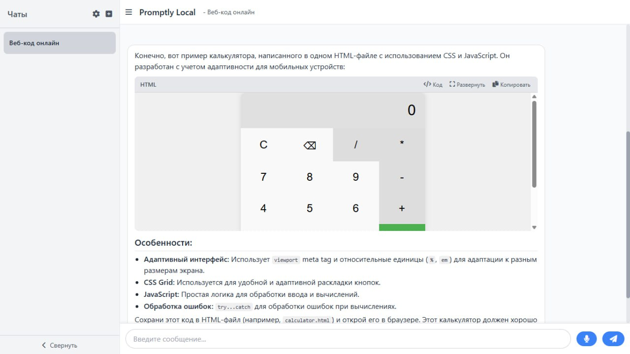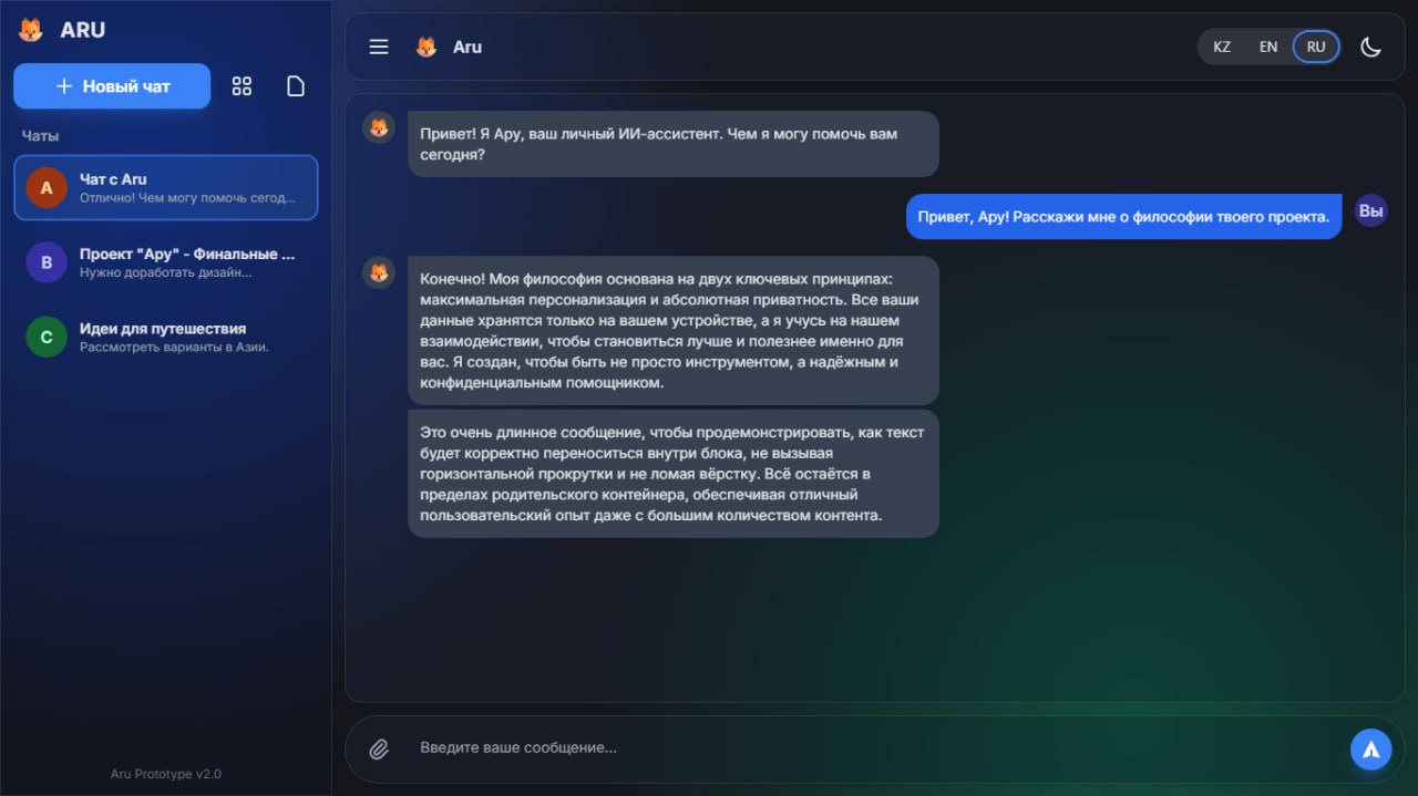 Мен қойған міндеттердің барлығы дерлік орындалды. Ару кез келген жерде, кез келген құрылғыда жұмыс істейді, кез келген провайдерге қосыла алады, ал егер PWA жүктеп алсаңыз, ол тура мағынада пайдаланушының компьютерінде Ollama арқылы localhost арқылы жұмыс істей алады.