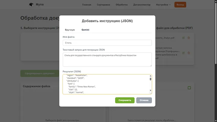 JSON құру — бұл іс жүзінде біздің құжатымыздың стилі, ол өзінде CSS қамтиды, егер не жазу керектігін білсеңіз, оны қолмен жазуға болады, немесе тағы да ИИ-ге сенуге болады, мен осындай параметрді енгізіп, өте жақсы нәтиже алдым.