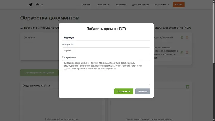 Промптты өңдеу. Мұнда мүмкіндігінше көбірек ақпарат пен нұсқаулар беру маңызды, бұл ең маңызды қадам. Нақты жұмыс кезінде бұл файлдар өте үлкен болуы мүмкін және құжатты өңдеу кезінде өте маңызды қадамдарды қамтуы мүмкін, мен көрнекілік үшін бәрін өте жеңілдеттім және оған жай ғана нұсқаларды қысқарақ, сусыз етуді және қателерді жоюды айттым.