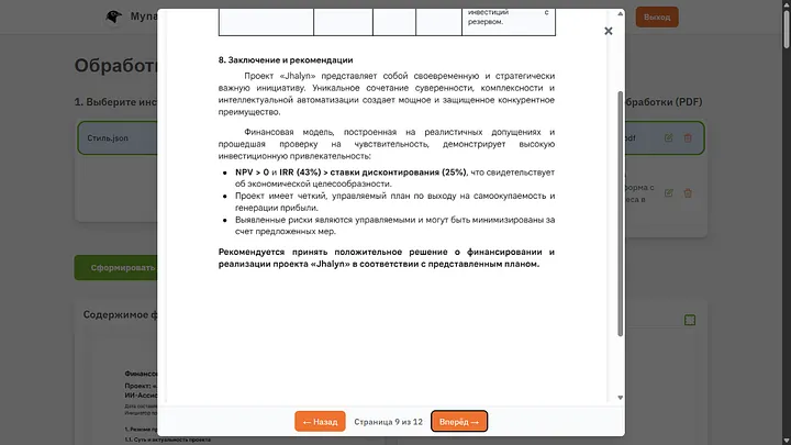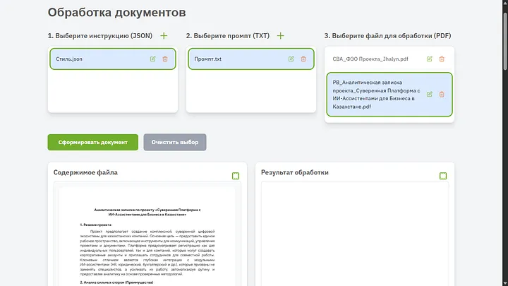 Құжаттың толық мәтіні, нұсқаулық және сөздік ИИ үшін бірыңғай тапсырма түрінде кетеді. Ол жаққа қосалқы ақпарат үшін JSON да келеді, ол қалай болғанда да HTML генерациялау кезінде қайтадан өңделеді.
