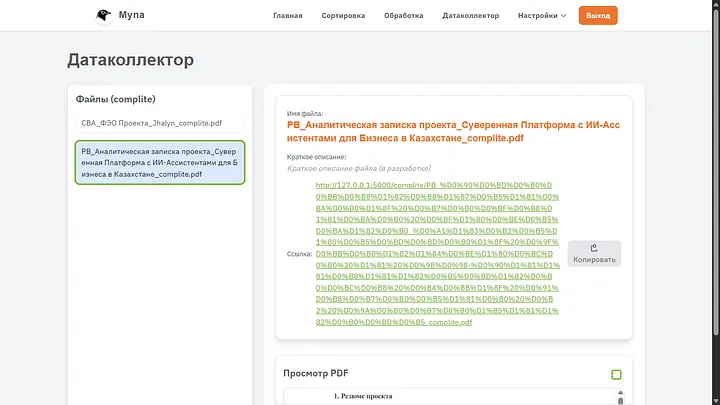 Бұл да алдын ала қарау терезесі. Егер біз файлды сұрыптаусыз және өңдеусіз қосқымыз келсе, мұны бір батырмамен жасауға болады. Бірақ ИИ оны тізілім кестесіне қосу және оған summary жасау үшін бәрібір оқиды.
